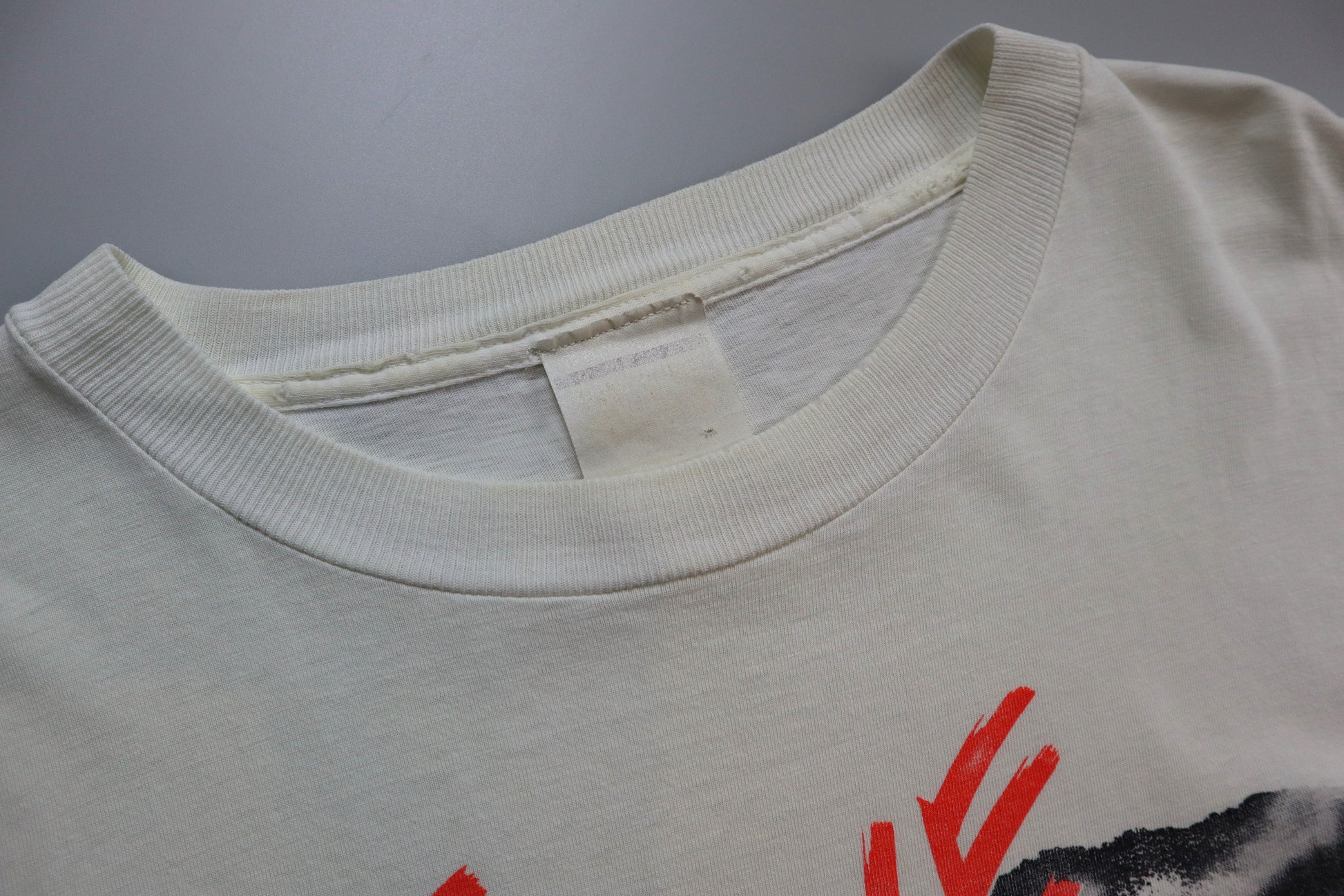 Vintage T-Shirt mit großem Magic Johnson Frontprint und “We Believe in Magic” Schriftzug. Entstanden Anfang der 90er, als Johnson nach seiner HIV-Diagnose auf das Spielfeld zurückkehrte – ein stilles Zeitdokument zwischen Sport, Mut und Popkultur.
