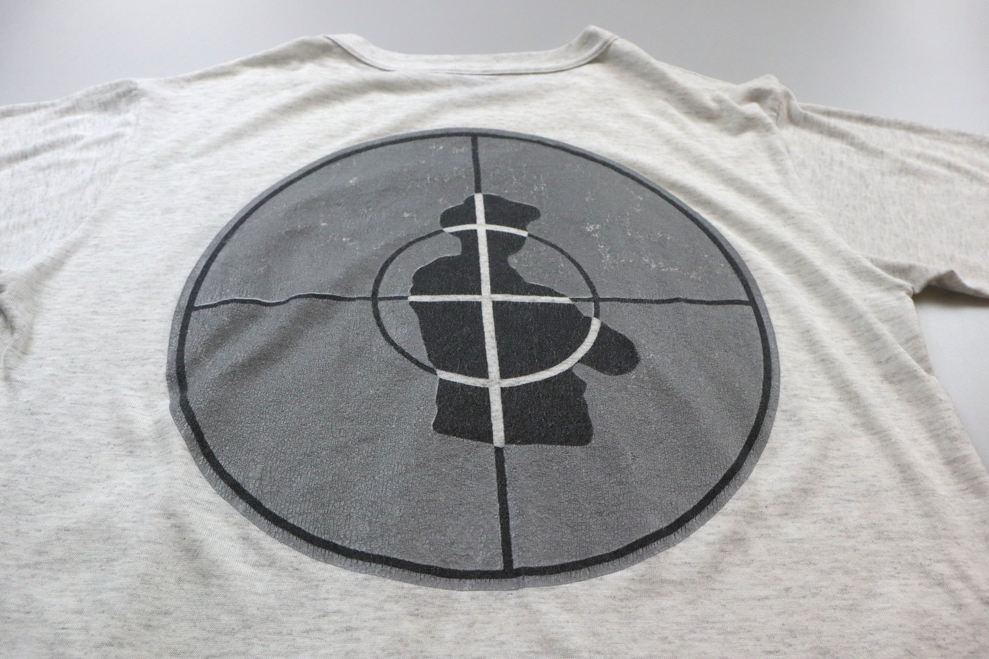 Seltenes 1990s Public Enemy Shirt mit großem Enemy-Frontprint und klassischem Fadenkreuz-Logo. Ein minimalistisches, aber starkes Design, das die politische Energie und Attitüde der Band perfekt einfängt – echtes East-Coast-Rap-Culture-Statement.