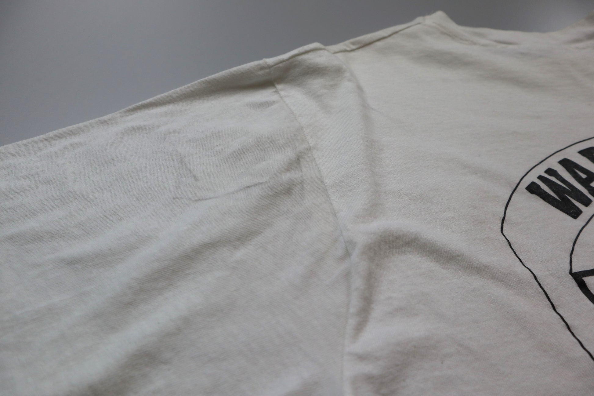 Leichte Vergilbung am Kragen, kleines Loch auf der Brust, Fleck am oberen Rücken